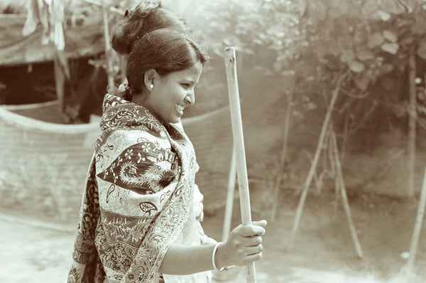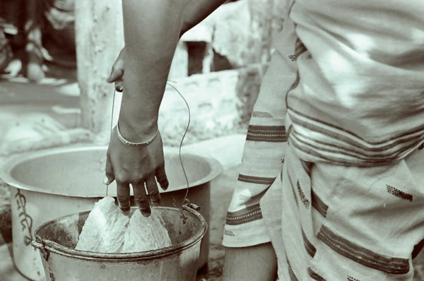 Our team in Assam are home-based female weavers who practice the craft of their culture - spinning, weaving and dyeing - and are eager to experiment with it.