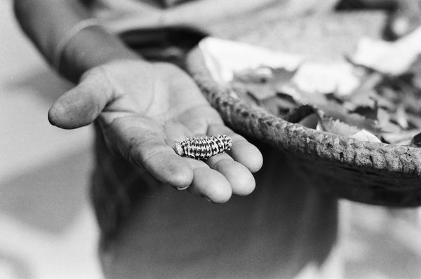 It is a very long process which takes around 45 days in total. The growth of the worm itself takes 30 days during which it is continuously eating the castor leaves from the trees in the villages.