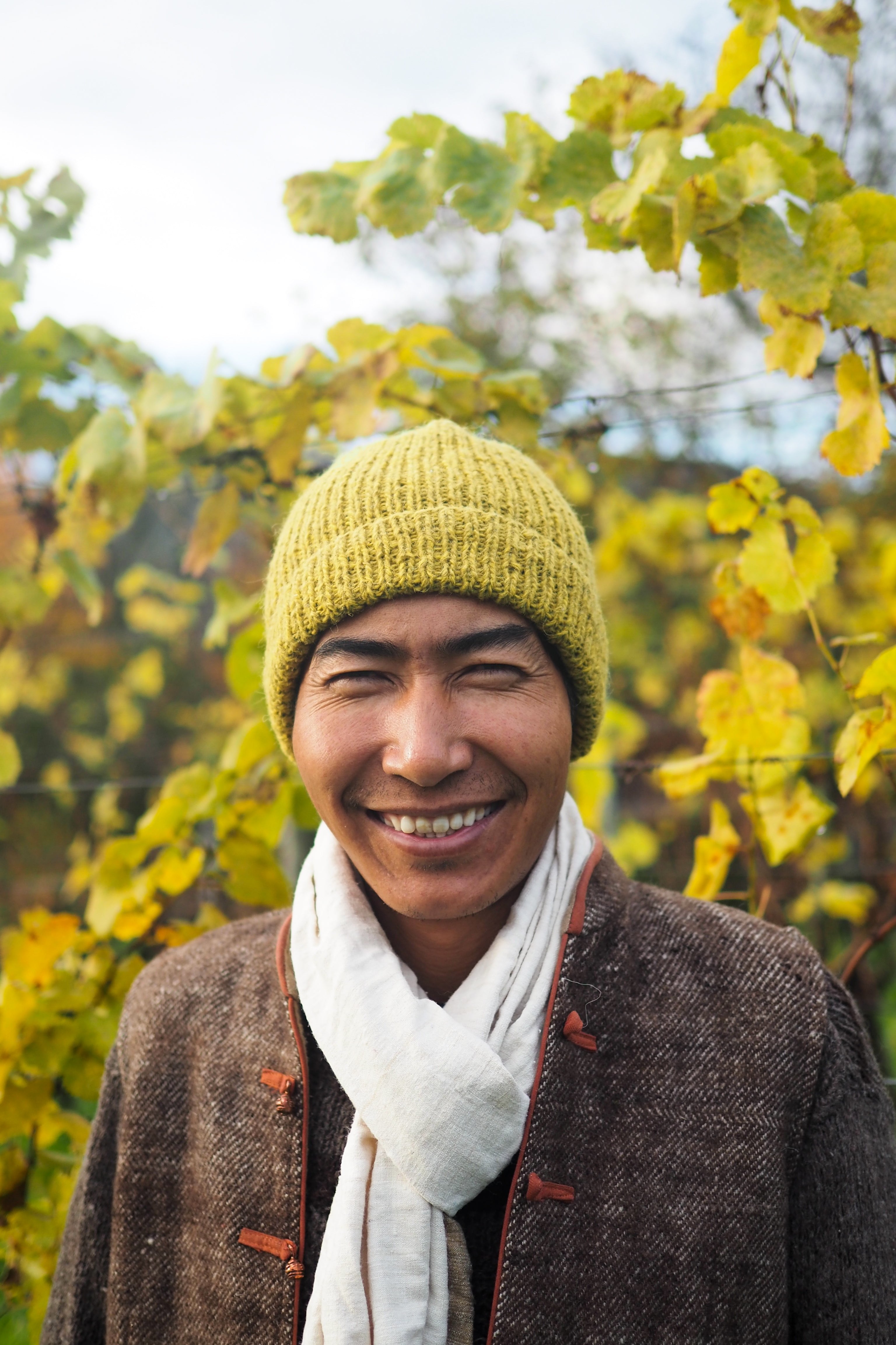 This beanie is hand-spun and hand-knitted by our team in Ladakh. The yarn used is our cosy sheep wool yarn Nomadic Fibers, held together for a warm and squishy feel. The beanie is knitted with sheep wool from the Changthang Plateau shorn by the nomad community. Some of the yarns are naturally dyed with our home grown marigolds, lac or the indigenous shrub artemesia euchroma.