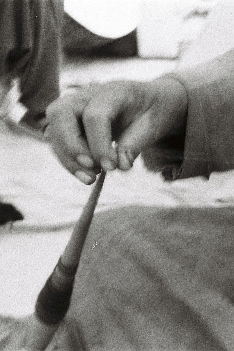 This handspun yarn is the second step in making woolen fabric and a wonderful, loosely spun yarn for weaving, knitting or felting. Before it is spun it has been skirted - the removal of thorns and other dirt, then washed by hand and machine carded. It comes from the sheep of our team from Changthang. The sheep live at an altitude between 4000m and 5000m, therefore the wool promises excellent warmth for the colder days. The handspinning assures a 100% pure and natural sheep wool. It is spun by our team of settled nomads close to the city of Leh, Ladakh. The wool is excellent for natural dyeing.