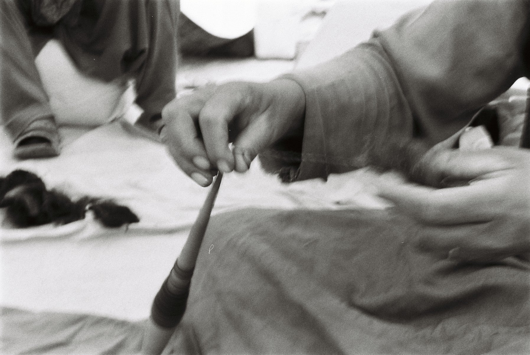 This handspun yarn is the second step in making woolen fabric and a wonderful, loosely spun yarn for weaving, knitting or felting. Before it is spun it has been skirted - the removal of thorns and other dirt, then washed by hand and machine carded. It comes from the sheep of our team from Changthang. The sheep live at an altitude between 4000m and 5000m, therefore the wool promises excellent warmth for the colder days. The handspinning assures a 100% pure and natural sheep wool. It is spun by our team of settled nomads close to the city of Leh, Ladakh. The wool is excellent for natural dyeing.