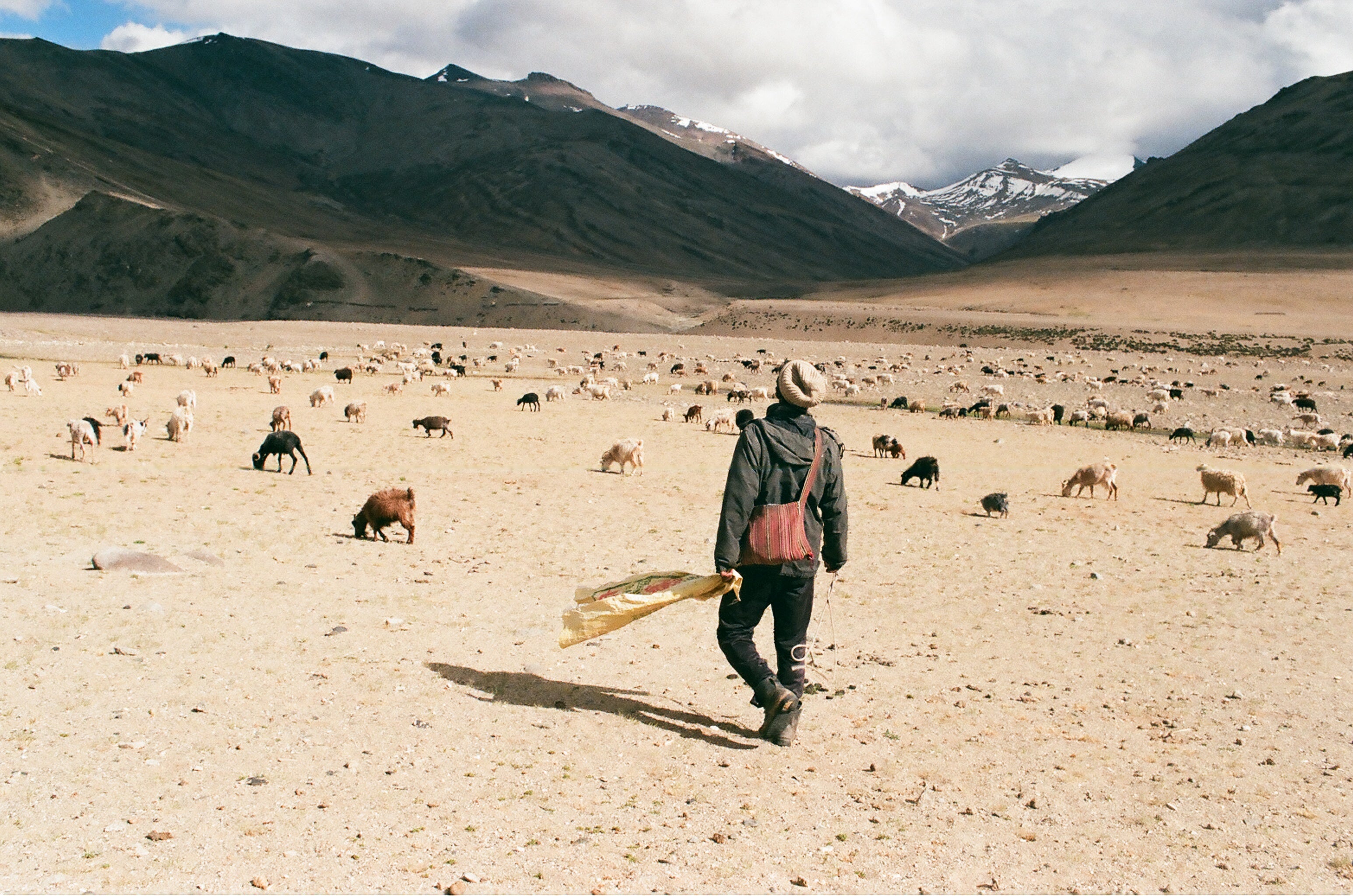 The sheep live at an altitude between 4000m and 5000m, therefore the wool promises excellent warmth for the colder days. The handspinning assures a 100% pure and natural sheep wool. It is spun by our team of settled nomads close to the city of Leh, Ladakh. The wool is excellent for natural dyeing.